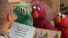 Stinky is anxious about preschool. Elmo and Chris give Stinky strategies to help Stinky calm down.