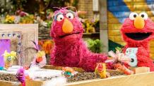 Elmo helps Professor Buck Awe teach a class of chickens using strategies he learned in preschool.