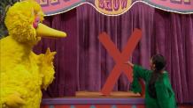 Big Bird and Snuffy are the hosts of "The Letter of the Day Show" on Sesame Street, and learn all about how the letter X can come at the end of a word.