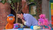 Elmo is too excited to teach Tango a new trick, so Julia and Sam show him how to shake out his energy and use a gentle voice and quiet body.