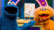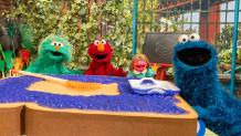Abby, Big Bird, and Cookie Monster play a game called "I Wonder If We Can Use This!" against Gabrielle, Zoe, and Elmo.