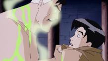 While touring the Wayne-Powers lab facilities, Blades' assistant Dr. Suzuki demonstrates the rings and the aura, which are meant for use as a self-contained environment for people with immune-system deficiencies. Bruce and Terry recognize the aura immediately, and the question then becomes: who in the lab is the untouchable criminal?