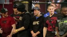 The pressure becomes too much for one fighter, forcing him to quit the competition. After a stirring speech from Brock, Team Lesnar faces Team Dos Santos in the second preliminary fight.