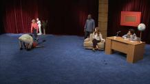 A comedic talk show from an alternate reality featuring unstable hosts, a variety of celebrities—both real and fake—and unusual studio action.