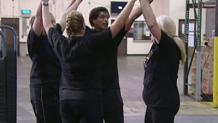 In part two of this week's two-part episode, the contestants continue to adjust to their newly formed blue and black teams. They also meet Prevention Magazine editor Liz Vaccariello and take a pop quiz about health and aging. Then it's a grueling last chance workout leading up to weigh-in, after which another player is sent packing.
