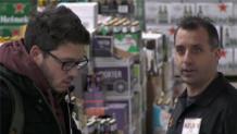 The guys give a taste of their awkward customer service at a liquor store, take tickets of humiliation at a deli counter, and try to get signatures to recognize phony holidays.