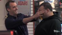 The guys push all the wrong buttons at a video game store, try to rope rock climbers into repeating a bizarre word and give away tickets to a flop of a show.