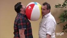 The guys give a security presentation that is anything but safe and hold hands with strangers in the park. Tonight's big loser quickly becomes an unwanted guest while clowning around at a kid's birthday party.
