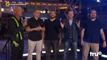 Sal, Joe, Q and Murr celebrate 100 episodes of Impractical Jokers with a LIVE punishment in the heart of NYC. Hosted by Howie Mandel, the hour long special opens with pre-taped challenges that involve the guys crossing items off their bucket lists, faking injuries at the grocery store and making their glorious return to the infamous two way mirror. The episode then shifts to South Street Seaport for a four way punishment in which each joker walks a five story high tightrope, live.