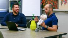 The guys try and work out the kinks as physical therapists, then pitch some way out-of-the-box ideas for TV hosts. Plus, the big loser gets rolled over by some speedy ladies.