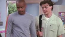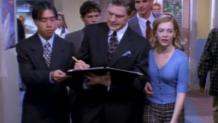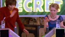A showdown between Dashiell and Harvey is interrupted when aunts Hilda and Zelda freeze the boys to announce that Sabrina has at last qualified for her witch's license, which will grant her universal knowledge. When the overjoyed Sabrina travels to the Other Realm License Bureau to collect her prize, she is dismayed to learn that she is not allowed to use it yet not until she discovers her "family secret" (a quest which will presumably keep her busy throughout the third season). Her first clue comes in the form of the license clerk, who is actually her extremely bad-tempered cousin Doris, and in her unfortunate attempt to resolve her divided feelings with a spell which transforms the boys' rivalry for her into a full-fledged surreal duel to the death. (Sabrina: "Oh, no. This must be the spell. They're going to fight over my heart. Being a witch would be alot easier without all the magic.") Only when her cousin Doris is about to zap Harvey does Sabrina instinctively reveal who she reall