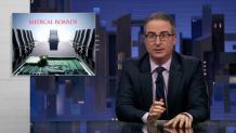 John Oliver discusses how state medical boards fail to protect patients, Kamala Harris' awkward call for a ceasefire in Gaza, the North Carolina Republican running for governor, and which reality show would benefit from becoming a government psyop.