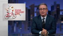 John Oliver discusses the downsides of food delivery apps, Donald Trump's latest attempt to pay off his legal debts, and why one southern California police department got in trouble with Lego.