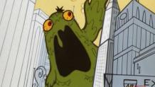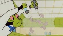 Blossom and Buttercup have an argument thinking that brains or brawn is the best way to destroy a monster.