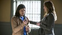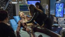 Barry is surprised when Felicity Smoak arrives from Starling City along with her boyfriend, Ray Palmer, who flies in as the Atom. They’ve come to visit S.T.A.R. Labs as Ray needs help with his suit. Their timing turns out to be fortuitous because it’s all hands on deck after a meta human named Brie Larvin unleashes hundreds of robotic bees to attack and kill her former co-workers, including Dr. Tina McGee. A group dinner with Barry, Felicity, Ray, Iris and Eddie turns into a disaster.