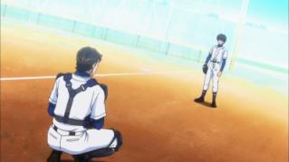 Chris finally tells Eijun what sets him apart is his moving fastball. He reveals all the training he's given Eijun could make him the ace if he does it regularly for one year. However Eijun wants to thank Chris personally by delivering his best pitch to him in a game. One night when he's doing secret practices, Coach Katoka catches him and threatens to split him up from Chris. When Eijun tells him his reason for practicing this way at night, he recommends Eijun start a towel exercise that will improve his flexibility and control. Now with his speed back and his movement becoming better than ever, Sawamura is ready for his final JV game. The only question is will there be a catcher available to help him and catch his moving fastball?