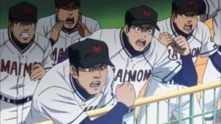 With a 15-0 lead in place, Seido brings in Sawamura to pitch inning 4. The game ends up being called, and Seido advances with ease. Seeing how high Furuya's ball was, Chris takes Sawamura aside and teaches him how to hold the ball and turn his pitch into a fine weapon no one will be expecting. Seido then participates in their second game of the tournament against Puplic Murata East High School.