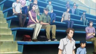 As the heat continues to increase, Coach Katoka declares that if Furuya even lets one batter on base, he will switch him out. At first this declaration provides Furuya the motivation he needs to get stronger, and his pitch gets faster. However Akikawa begins to use their bunt plan efficiently forcing Furuya to tire himself even more. With no other choice, a pitcher change is called for. Sawamura is called into action. After nearly throwing the ball away on a toss to first base, Miyuki calls for a four-seam fastball to the inside, the exact pitch Sawamura used against the coach the night before. We see the results of that pitch. Akikawa hesitates being unable to see his (Sawamura's) pitch due to his form, and Sawamura forces a pop out to third to get out of the 4th inning.
