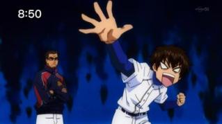 Eijun is nervous about rooming with older teammates, but they make him feel a too little at home on his first night. Eijun ends up oversleeping and shows up late when it's time to meet Coach Tesshina Katoka, a former Japanese pro pitcher. Miyuki also shows up late, but he uses Sawamura as a decoy to sneak into his line. Katoka shows no mercy and says Eijun can never become a pitcher if he can't show up on time. He also makes Miyuki run laps. Sawamura is determined to prove he can be the ace though, so Coach Katoka gives him a special challenge, saying until he can complete this challenge, he can't play in a baseball game for Seidou.