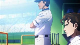 Furuya comes up to bat in the 7-spot and hits a solo homerun to make it 4-1 in the top of the 3rd. In the bottom of the third inning Coach Katoka decides to make his move and bring in Sawamura while Furuya moves out to left field. At first Sawamura pitches the ball straight down the middle, but a throwback from Miyuki makes Sawamura remember it is a team game and not a one-on-one contest. Sawamura is able to trick Raichi and get him behind with some outside pitches into a 1-2 count. Finally Sawamura unleashes his 4-seam fastball to the inside and gets Raichi to pop out. As Seido comes to bat in the top of the fourth a double from the captain gives them a 5-1 lead. Seeing that they can't fall behind any more, Raizou calls for a pitches change and brings in Sanada.