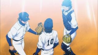 After the captain hits a home run off Sanada, Seido once again leads by two runs. We reach the bottom of the eighth inning, and Kawakami is struggling. He insists on connecting to Tanba in the next game, but when Raichi is walked and manages to steal second base he finds himself in a pinch. Kawakami is able to get two outs, but Raichi scores, making it 6-5, and Yakusi has runners on first and third. Kataoka steps up and calls for a pitching change. In comes Tanba with two outs for his first appearance for an ace vs. ace showdown.