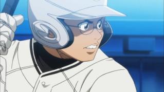 The battle between Sensen and Seishun gets underway. Sawamura's friends arrive in the fourth inning to see that Seido trails 1-0. In the fourth Seido begins to make contact with Hino's curve ball. Seido manages to load the bases, but a dramatic double play fly out, tag out at home keeps Seishun locked at zero. As we reach the sixth inning Ryousan gets on base. Haruchi is told to start warming up his batting skills, and Sawamura is told to warm up in the bullpen. Ryousan manages to steal home on a ground ball to third, tying the score at 1 a piece. This episode covers chapters 124 to 127.