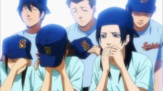 Despite seeing Mei's pitching, Sawamura declares that they will be the ones to advance to Nationals. When the first years need to use the restroom after the match, Kazuya decides to escort them so they won't get lost like usual. While waiting for the first years to finish, Kazuya and Mei meet face-to-face, and we learn that Mei had tried to recruit Kazuya to Inashiro to form the strongest team in the nation. Instead of joining them, Kazuya vowed to beat them and form the strongest team elsewhere. This episode covers chapter 140 and the second half of 149.