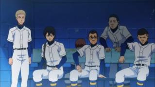 Thanks to the words of fellow first year Haruichi Kominato, Eijun makes it on base. Next Haruichi promises to bring him home and get the first years a run. Haruichi proves to be a brilliant batter, and thanks to his spring Eijun scores. However the first years quickly get three outs, and Coach Katoka says he will call it a game unless all the first years agree to continue. Most want to drop out, but thanks to words of encouragement from Eijun they decide to continue. Eijun is placed on the mound, and Hariuchi is placed at shortstop. The two seem to be wroking effectively together against the older students until Eijun's roommate comes to the plate. Can Eijun find a way to strike out his roommate, who is the #4 hitter for the JV team?