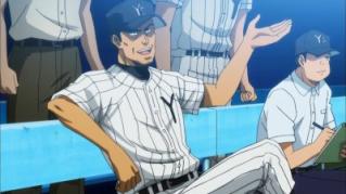 After pitching 5 innings instead of three Furuya is sent to left field and Sawamura is brought in to pitch. Sawamura has his regular amount of power but he appears to have lost what little control he had. Katoka and Miyuki realize Sawamura has the yips.