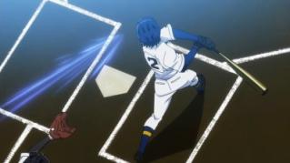 Sawamura replaces Furuya on the ninth but feels overwhelmed by the cheering crowd, and Umemiya's fighting spirit. Aware of Sawamura's state of mind but at full count, Miyuki takes the time to decide what pitch to call. He thinks of Kataoka's strategy before their defense, but Miyuki calls for a pitch to the inside to strike Umemiya out.