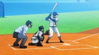 Seidou scores the first run of the game with Maezono's bat while Kawakami pitches strongly at the bottom. On top of the third, Seidou on scoring position and Miyuki at-bat, Raizou makes his move sending in Raichi to the mound to face Miyuki.