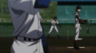 Maezono Kenta faces off with Teito and Mukai's 3D strike zone. When he is able to make contact with a couple of outside pitches, Teito decides to try and confuse him by changing it up with n inside pitch. Kenta manages to hit a double, scoring three runs for Seido. All the scouts are shocked to see it is Kenta who gets the hit that seems to turn the game around. For the ninth inning Sawamura is subbed out and Kawakami is brought in. Kawakami gives up a couple of unexpected timely hits, but some calm words from Miyuki changes his pace and determines the final outcome of the game. As the game ends the sun breaks out on to the field, signifying it approves of whom has won and advanced. After the game Ochiai Hiromitsu questions Kataoka on why he made some of the moves he did during the game. He realizes Katoka's coaching style if slowly evolving him and realizes if he doesn't start giving input now, Kataoka may very well not be leaving the team's head coach position.