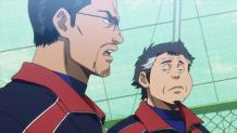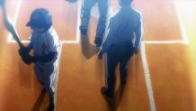At Meiji Jingu Secondary Stadium, the sparks are flying as Inashiro and Yakushi's game wraps up. Meanwhile, Okumura and the other new Seido first-years are learning how tough high school baseball can be. Seido can seat 20 players on the bench for the spring tournament, but they've only registered 18. Coach Kataoka purposely left two spots open so the third-years for whom this is the last summer tournament, as well as the second and new first-years will compete for them.