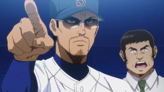Practice game with Nishiho, where a tense pitcher fight of 0-0 continues. In the 6th time, Sawamura invites a pinch, but survives the predicament with the ball returned by Center Aso. Behind that, the ball hit by Shoji, one year of the leading batter, draws a high parabola. The whereabouts of the ball is ----. Sawamura, on the other hand, keeps the pitch of the coach, taking on the expectations of the coach and the team. In this figure full of fighting spirit, hot feelings are transmitted not only to nine and bench members but also to the audience at the stand.