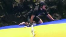 At the "Climber's Paradise" challenge each team must climb a wall while carrying a bag full of pegs for one another. The pegs will then be used to make it up the wall and two flags must be captured at the top to complete the mission. But there is a 10-minute time limit and falling off of the wall you means you are automatically disqualified.