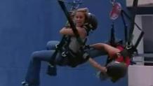 Mission: ""Bungee Bound""- To bungee jump from 160 feet with you hands hooked together- Unhook your hands, grab the flag on your stomach the fastest.
