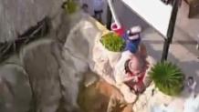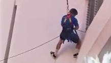 Mission: ""Grope The Rope""- To traverse a wire hanging 17 stories above the ground faster than your opponent on a opposing wire.