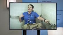 Dina shows the staff how bathroom breaks are hurting their efficiency.