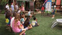 The children explore the booths at Camp Kikiwaka's Olde Moose Rump Days; after finding an old wooden box from Zuri's booth, the kids suddenly find themselves in the 1600s wearing Colonial garb.