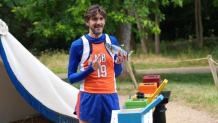 In the always-awkward first team task of the series, Stevie Martin invents a new way for humans to move, while Fatiha El-Ghorri sweeps the Taskmaster garden with a small broom.