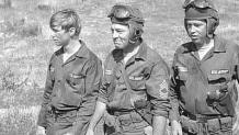 Three National Guardsmen explore the site of Custer's Last Stand.
