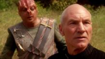 Stardate: 45047.2 - Picard must find a way to communicate with the newly discovered Tamarians, who speak entirely in metaphors, when a Tamarian Captain is brutally killed.