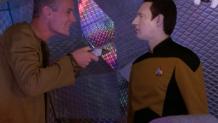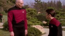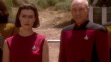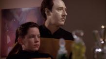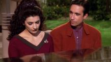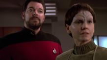 Stardate: 45614.6 - While investigating the disappearance of a J'naii shuttlecraft, the crew finds reason to believe the missing ship is stranded in an abnormal pocket called "null space." Riker and Soren, a member of the J'naii race, begin preparing to rescue the craft, and the two strike up a friendship. Their relationship develops quickly as the pair question each other about mating habits, since the J'naii are androgynous and do not identify themselves as either male or female. Despite this difference, sparks begin to fly between them.