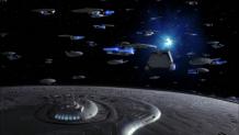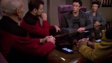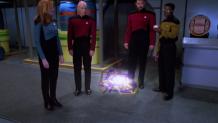 After his encounter with Q, Picard assembles the senior staff, and wonders if Q is actually giving him a chance to save humanity by showing him that the spatial anomaly also exists in the past...