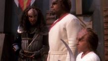 Worf's adoptive brother violates the Prime Directive to save an alien society whose planet is dying.