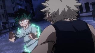 Following the provisional licensing exam, Izuku tries out his Shoot Style on Bakugo as they have a heart-to-heart through their fight.