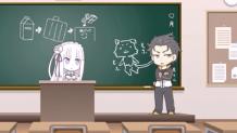 Subaru wakes up to find himself in a classroom where Emilia is a teacher. Attempting to ask her about Puck, she tells him that the familiar is the school's principal. After his questions disrupt class and he is sent to stand in the hall, Subaru vows to return to his own world, before wondering what world that really is.