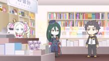 Subaru and Emilia wait at the bookstore for the rest of the gang's arrival to take advantage of an exciting new release!
