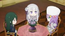 The witches all praised Emilia's performance in the trial, and then at the tea party, they teased about the relationship between Echidna and Natsuki Subaru.
