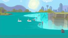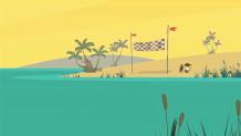 The Total Drama Aftermath show reveals the location of the finale is Hawaii. The four most recently eliminated contestants are brought out before the peanut gallery is split into three teams and a final challenge is revealed; a representative of each team competes in a surfing competition to win the finalists a possible advantage for the finale. Geoff regains Bridgette, but with Blaineley joining as well.